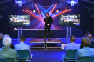 David Kloosterhuis, voorzitter en nationaal gedelegeerde van Conseil International des Organisations de Festivals (CIOFF) Nederland, betrad het podium om del ondernemers te vertellen over en mee te nemen in de magische wereld van dans vanuit verschillende culturen. Hij zoomde in op de maatschappelijke en economische invloeden en impact, samenwerkingsverbanden met ondernemers. Hoe zoeken zij de samenwerking. Hoe dekken ze kosten en baten? Wat en wie heb je daarvoor nodig? Iets wat belangrijk is in elke onderneming.