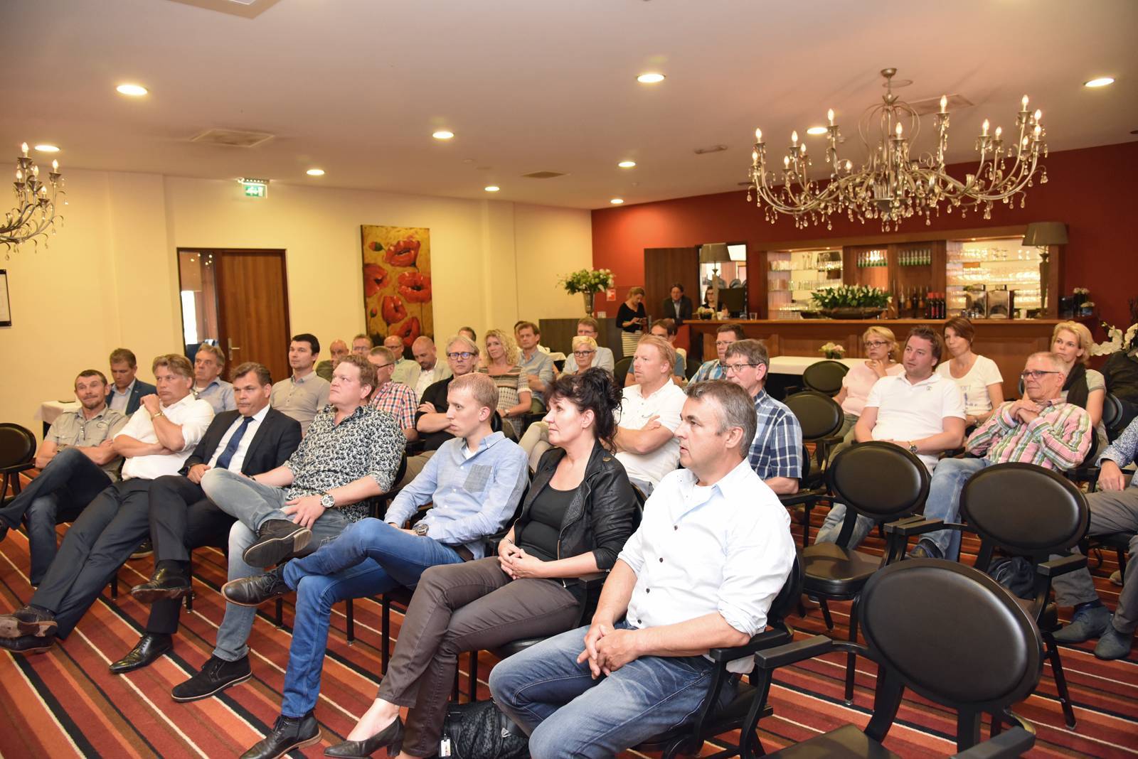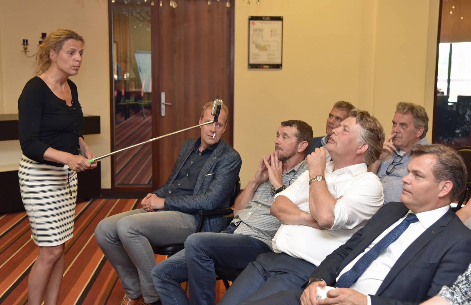 Wolvega – Het bestuur van IN-Wolvega, Frank Zeinstra, Jaap Bijsterbosch en Bert Piest, organiseerde op 31 mei in Van der Valk Hotel in Wolvega voor ruim 40 genodigden een interessante en vooral informatieve avond over trends en nieuwe digitale communicatie. De presentatie werd verzorgd door Liesbeth Schievink-de Vries van Zaak van Interactie en Sven van Rooijen van BAI IT Solutions, beide ondernemingen zijn gehuisvest op de bovenverdieping van het NS-station in Wolvega. Het ging vooral over het onmisbaar zijn van de beleving in een winkel of bedrijf en ook hoe trek je de klant naar binnen. Verder werd uitleg gegeven over o.a. augmented reality en konden de aanwezigen dat werkelijk beleven. De allernieuwste ontwikkeling is de Microsoft Hololens, de concurrent van Google glass
