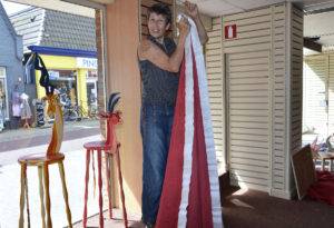 Foto: Titi Zaadnoordijk bezig met de inrichting.  (Foto: Lenus van der Broek)