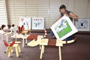 Foto: Titi Zaadnoordijk bezig met de inrichting.  (Foto: Lenus van der Broek)