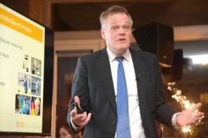 Over ketensamenwerking hebben CCW en de gemeente een autoriteit in Nederland voor deze avond uitgenodigd: Prof. Dr. Jack van der Veen van de Nyenrode Business Universiteit. Met hem kregen de bezoekers direct een soort college met praktische handvatten. Hij is van mening dat niet tegen de klant, maar vooral voor de klant samengewerkt moet worden. Hij gaf de ondernemers mee: wees eerlijk, betrouwbaar, integer, transparant en open.