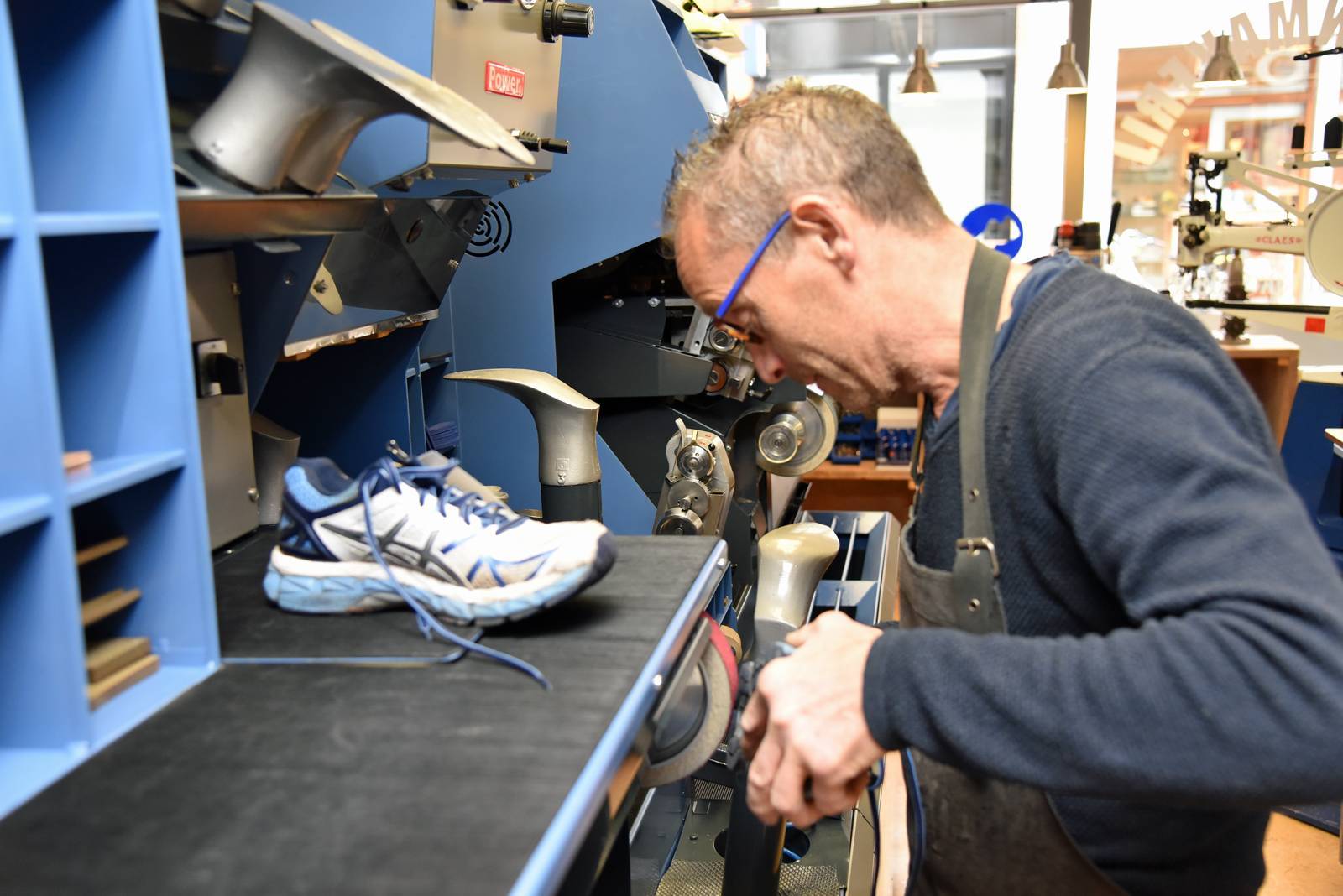 In de afgelopen 35 jaar zat Hans niet stil. Hij is continu bezig om de winkel te verbeteren en het voor zijn klanten zo aangenaam mogelijk te maken. Zo verhuisde hij zijn winkel in 2001 van een pand tegenover de Hema (op de foto) naar het grotere en huidige pand naast de Albert Heijn. Het afgelopen jaar zijn de machines compleet gereviseerd, en heeft de schoenmakerszaak een geheel nieuwe uitstraling gekregen.
