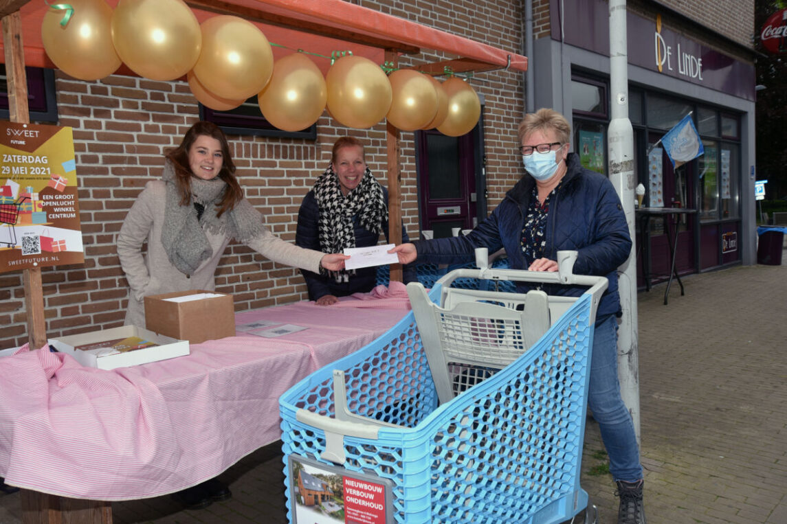 Daarom zette de Stichting Sweet Future zaterdag een actie op in het centrum van Wolvega op touw. Aan beide ingangen van de winkelstraat, bij supermarkt Albert Heijn en Modehuis Boersma, stond een stand van Sweet Future. Daar ststonden supermarktwinkelwagens en trolleys klaar. De borg van 5 euro kon worden gedoneerd aan Sweet Future, dat ondernemers bijstaat in deze coronatijd. Klanten konden lokale ondernemers ondersteunen door een envelop te kopen voor 50 euro met vijf waardebonnen van 10 euro. Van welke winkels de waardebonnen zijn, was een verrassing. Bij aanschaf van de envelop maakten deelnemers kans op prijzen zoals een luchtballonvaart, boodschappenpakketten, beautypakket en bakkerstassen. Verder zijn er ondernemers die een speciale Sweet Future box hebben samengesteld, zoals kok Jan Smink.