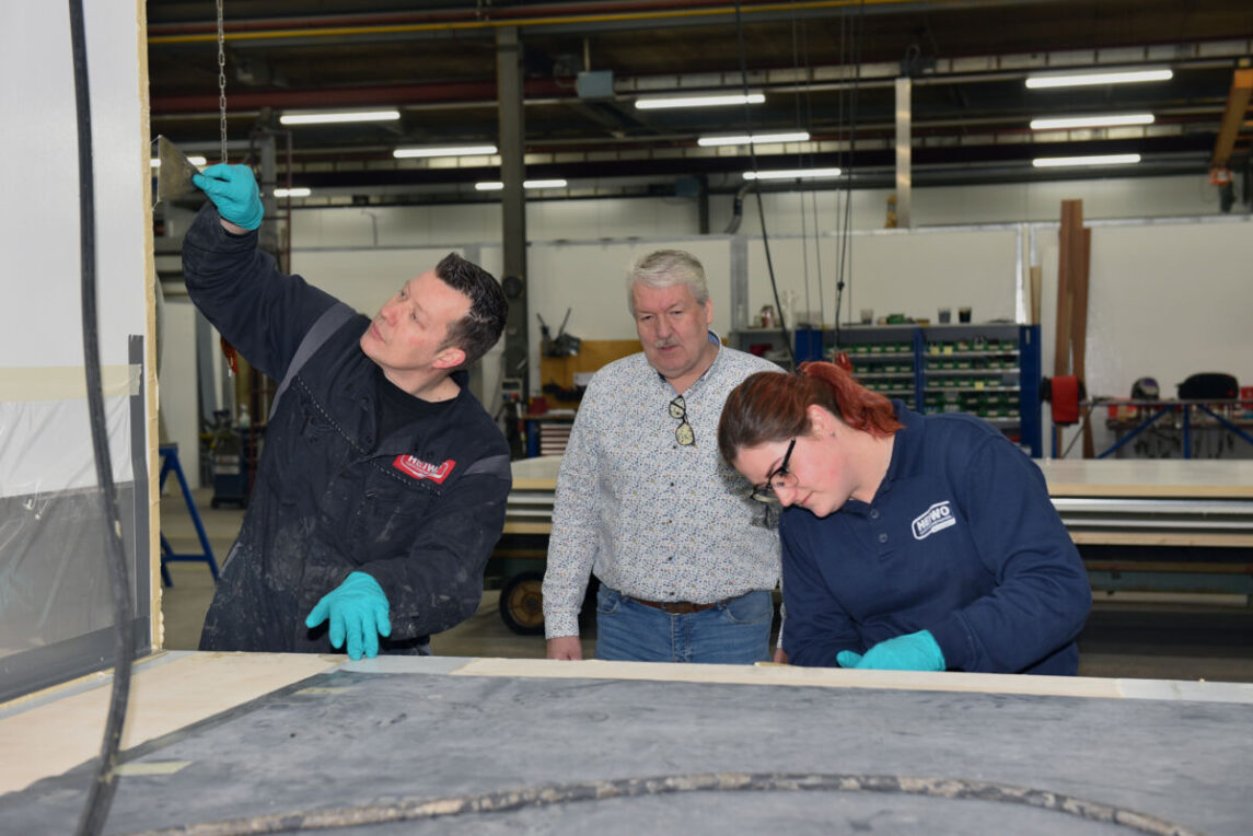 Anne Ferwerda is inmiddels volop aan de slag bij de Heiwo. Ze is haar opleiding Werktuigbouwkunde in 2017 bij Geesinknorba begonnen. Ze is inmiddels met haar derde opleiding tot Carrosseriebouwer bezig en kent inmiddels de meeste aspecten van het vak, hoe ze op de afdeling Chassispreparatie bij Geesinknorba de verschillende soorten (elektrische) chassis voorbereidt voor de laadbak die erop komt. Bij de Heiwo leert ze echter alles over het verlijmen van panelen, deuren en zelfs een hele opbouw, wat weer hele andere vaardigheden vereist. Ze kan hiermee uiteraard haar diploma tot allround carrosseriebouwer halen. “Het bevalt mij prima in dit vakgebied en wil graag na mijn opleiding carrosseriebouwer worden”, aldus Anne Ferwerda.